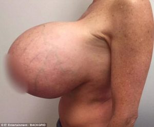 Esas prótesis estaban diseñadas para ir creciendo una vez implantados en el cuerpo, absorbiendo fluidos del organismo. Una infección de la prótesis de su seno derecho hizo que empezara a perder líquido. Los médicos del reality show Botched! le sugirieron extraer los implantes porque corre serio riesgo de una grave infección.
