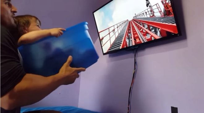 Así que se le ocurrió conectar su Smart TV a Youtube, puso un video de una montaña rusa y subió a la pequeña a una caja de plástico. El resto es pura fantasía.