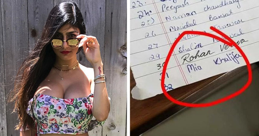 El profesor pidió que los alumnos se anotaran en una lista de asistencia, que luego leería en voz alta, para que no se anotara alguien que no estuviera presente en el lugar. Alguien se hizo el gracioso y añadió el nombre de Mia Khalifa en el registro de asistencia, cuenta ScoopWhoop.