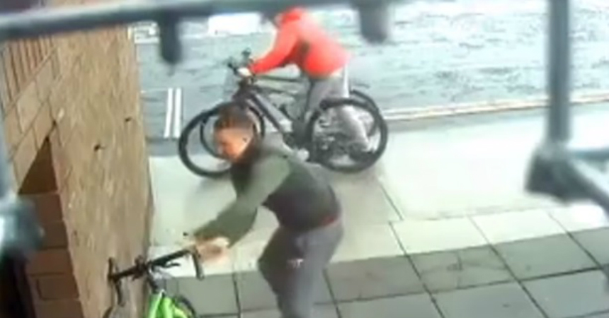 Un video perteneciente a un registro de cámaras de seguridad, que se comenzó a viralizar en Youtube, muestra cómo unos sujetos tratan de robar una bicicleta, luego de que el dueño la dejara por solo 15 segundos.