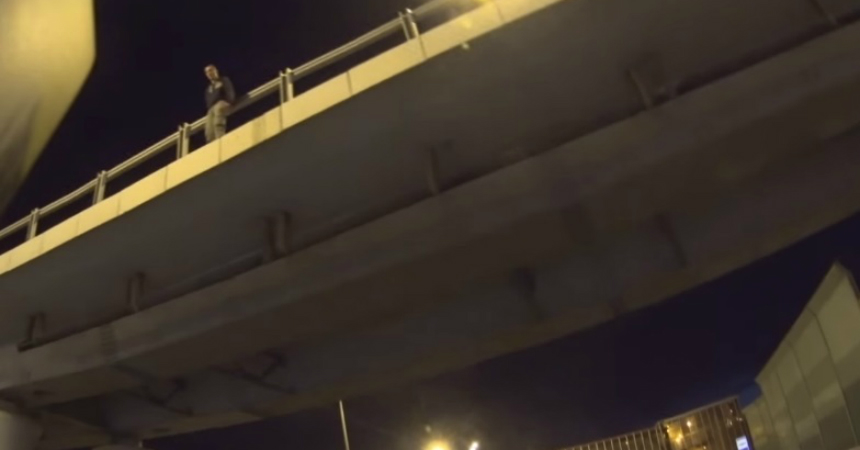 Un video que se comenzó a viralizar en redes sociales, muestra el momento exacto en que un conductor de una motocicleta se percató de la presencia de un joven que estaba decidido a terminar con su vida, lanzándose de un puente, en Rusia.