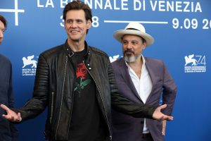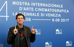 Jim navegó en Venecia para llegar al estreno mundial de su documental Jim y Andy: The Great Beyond, que relata el proceso creativo durante la producción de 1999.