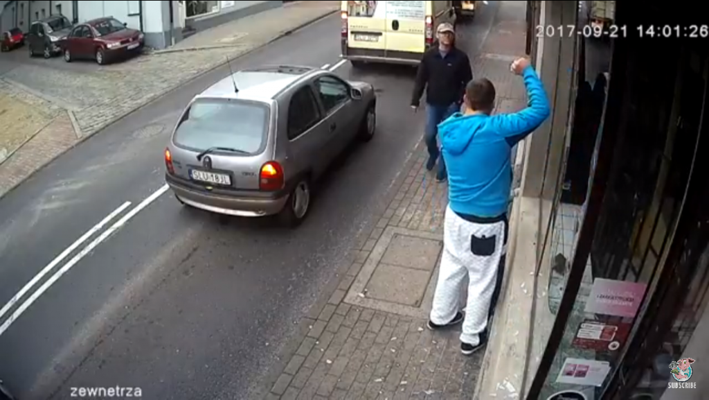 Un hombre visiblemente iracundo intentaba destruir una tienda en Polonia, a punta de patadas y piedras rompía los vidrios de esta, incluos un transeunte al ver lo que ocurría quiso frenarlo pero nada consiguió.