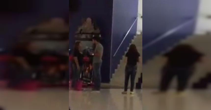 Y es que el sujeto fue descubierto por su mujer con otra chica a la salida de un cine, dentro de un centro comercial, quien tuvo una violenta reacción que se volvió todo un video viral.