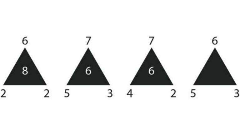 ¿Qué debes hacer? ahora te lo contamos, el objetivo de este es saber cuál es el número que falta en la siguiente gráfica siguiendo la lógica de que plantean los triángulo, que tiene números en cada una de sus equinas y uno en su interior.