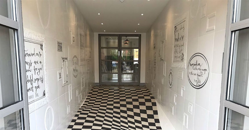 Here’s how to navigate our floor! #tiles #Manchester #Lovetiles #Illusion #Aliceinwonderland #CharlieAndthechocolatefactory pic.twitter.com/fn8kV2Wcz9