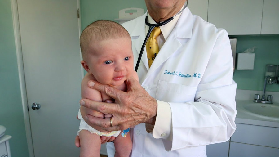 Robert Hamilton es un pediatra que tiene su consulta en California, y él tiene una especial técnica para calmar a un bebé.