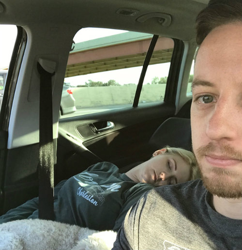 Resulta que este hombre cuenta que cada vez que se suben al auto ella inmediatamente se duerme por lo que él es una especie de «viajero solitario», así que para tomarse la situación con humor recopiló distintas imágenes de la joven durmiendo de lo lindo.