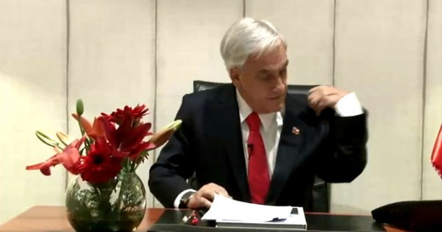 “¿Tiene mi block, Pablo? Pida que me traigan mi block porque ya no me voy a mover de aquí yo”, se escucha decir a Piñera. Pero lo que llama la atención es la seguidilla de tics que tiene en el poco lapso de tiempo que dura la grabación. Son en total 18 movimientos que realiza en menos de un minuto.