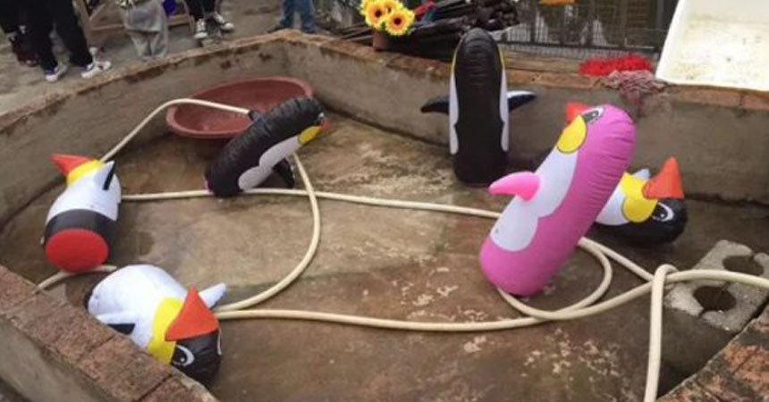 Los visitantes encontraron gansos, gallos, una sola tortuga a la cual le podían lanzar dinero, y una tina llena de pingüinos inflables, a pesar de que el zoológico había anunciado que habría una gran cantidad de animales vivos, cuenta Mashable.