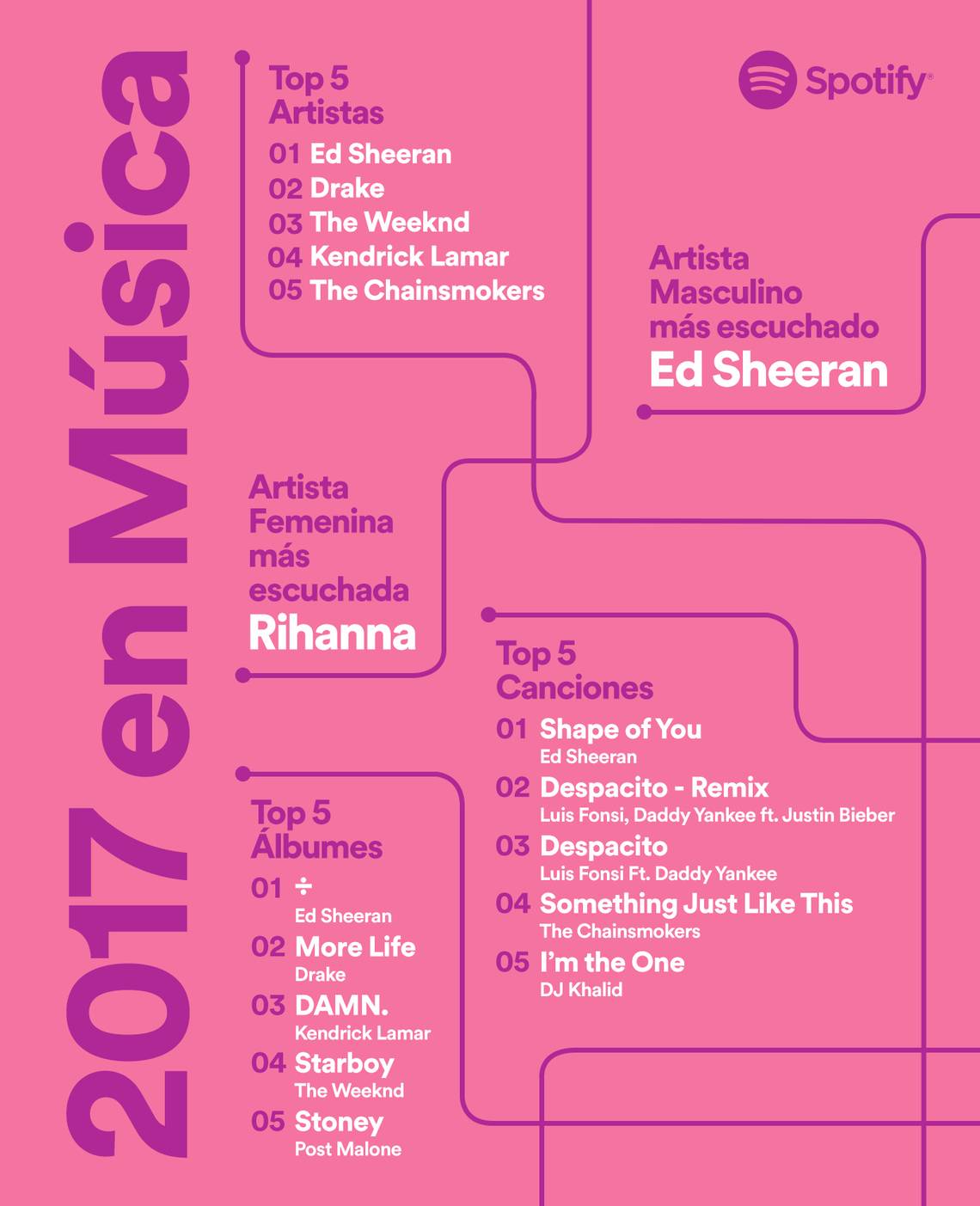 Las canciones y artistas más escuchados en Chile y el mundo en Spotify este 2017
