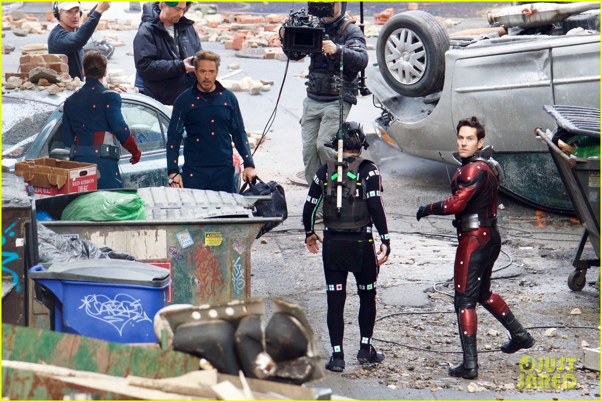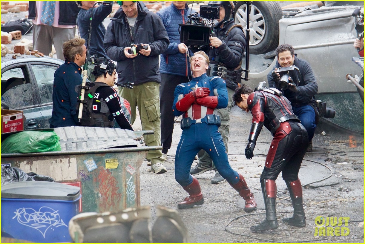De hecho en las fotografías se puede ver a Tony Stark, Hulk y el Capitán América usando el antiguo traje de la primera entrega de “Los Vengadores”. Además se puede ver a Ant-Man (Paul Rudd).