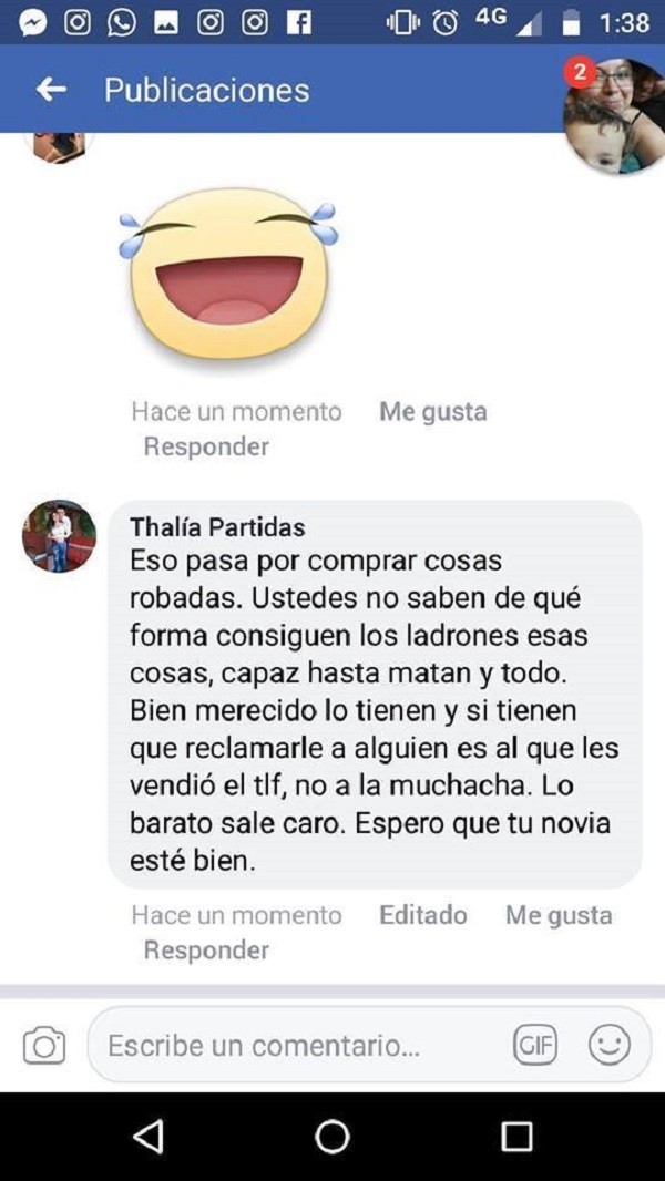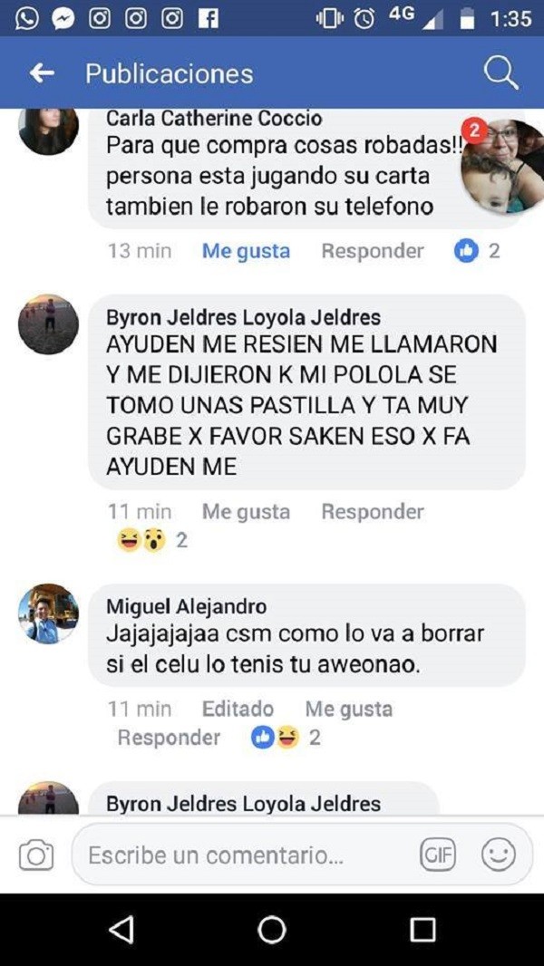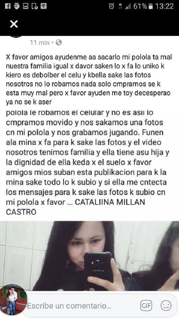Tras lo ocurrido la parejita pidió que «por favor» los dejaran en paz, afirmando que no robaron el aparato, que sólo lo compraron y que sus familias la estaban pasando muy mal con la situación, por lo que ofrecieron devolver el celular a su dueña.