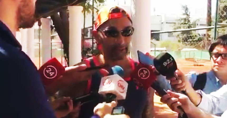 El Chino está entrenando para la Copa Davis junto al equipo chileno que enfrentará a Ecuador, y varios reporteros llegaron hasta el Court Central del Estadio Nacional, para saber las impresiones de Ríos. El extenista eludió a la prensa citando a Diego Armando Maradona.