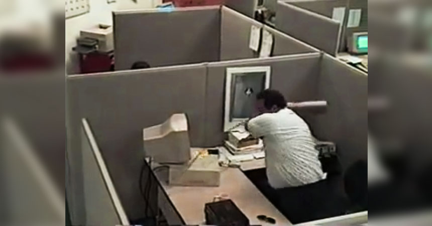 En esa época el video de un furioso hombre al que se le quedaba trabado un proceso en su computadora y que fue grabado por una cámara de seguridad se viralizó en todo el mundo. El tipo termina destruyendo con un teclado el aparato por completo.