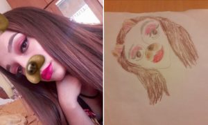 Resulta que un «ilustrador» le ofreció a la chica realizar un retrato de una fotografía que ella misma había publicado anteriormente en la red social, dicha imagen era de una selfie con el popular filtro de ‘perrito’ de aplicaciones como Instagram o Snapchat, para esto le pidió permiso antes de hacerlo: “Buenas noches, puedo hacerte una pregunta ¿puedo dibujarte esta foto? Si te molesta y no quieres, no hay problema. Es que como soy caballero pido permiso, porque hay gente que no les gusta que los dibuje» escribió el cabro llamado Jorgito.