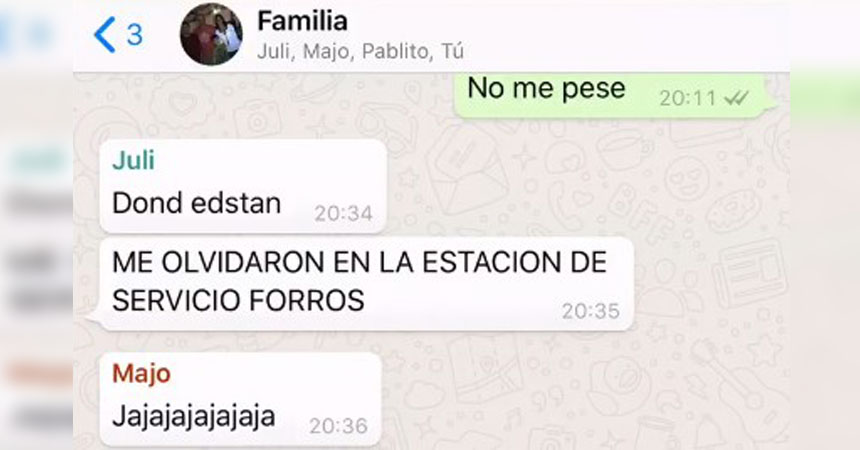 «Me olvidaron en la estación de servicio, forros», escribió la niña, en el grupo de WhatsApp. Majo, su mamá, soltó un «jajaja» y luego grabó un audio que es imperdible, cuenta Telefe Noticias.