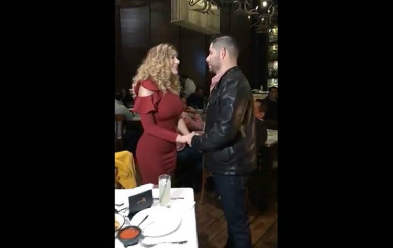En el registro se ve a un joven en un concurrido restaurante intentando sorprender a la chiquilla con flores y un anillo para pedirle que sea su esposa, pero ella Yajaira Tijerina, hija de un excantante de música tradicional , lo rechazó frente a todos.