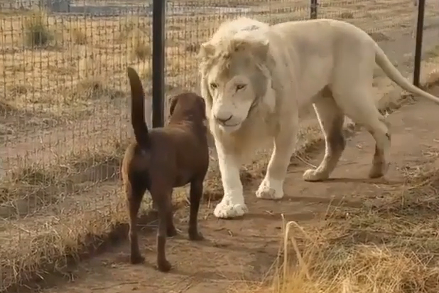 Un ejemplo de esto es el video publicado por la Fundación Black Jaguar-White Tiger, ya que en este se ve a un león blanco besándole la pata a su amigo, un perro .