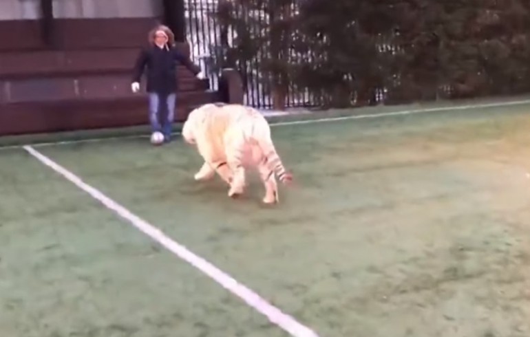 En el registro se ve al animal jugar y correr detrás del balón junto a su «entrenador», el domador de circo Mijaíl Zarétski en Moscú.