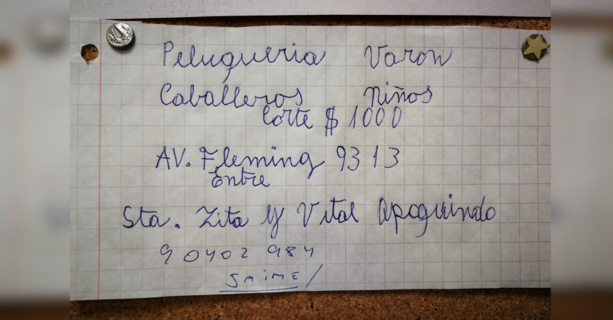 Gonzalo Gálvez, quien trabaja en el Mall Los Dominicos, hizo público en Facebook el cartel que el hombre ponía, ofreciendo corte de pelo a solo mil pesos.