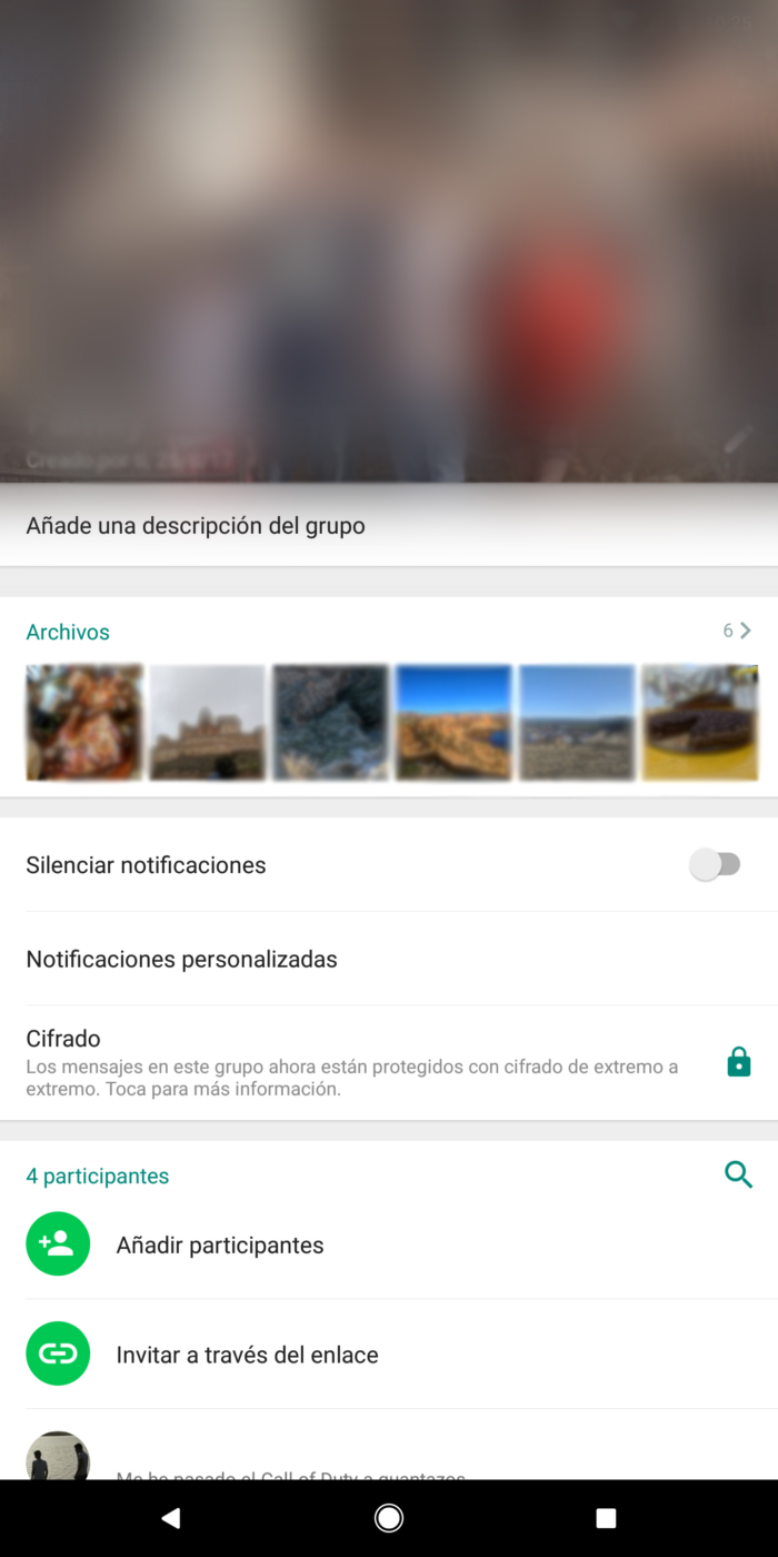 Todos los participantes del grupo podrán ver la descripción en la parte superior de la pantalla de información de este. Eso no es todo ya que cuando un usuario se una al grupo a través de un enlace o mediante una invitación del administrador, verá la descripción en un recuadro que desaparecerá cuando el usuario salga del chat.