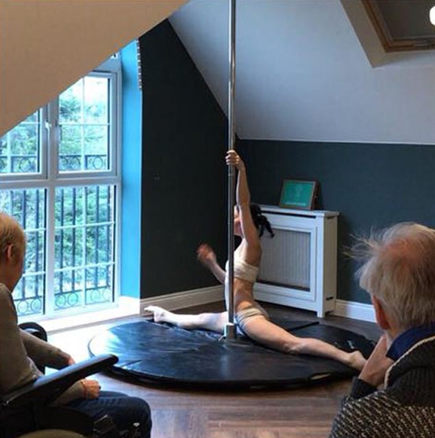 Izzy Nicholls, director de operaciones y calidad de Encore Care Homes, que administra Fairmile Grange, dijo: «En Fairmile Grange, familiares y residentes solicitaron más actividades de estilo moderno. A los residentes se les dieron varias opciones y específicamente eligieron una compañía de bailarinas de caño».