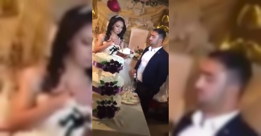 Un video que se comenzó a viralizar en redes sociales, muestra el momento exacto en que una pareja, recién casada, se encuentra cortando el pastel de novios.