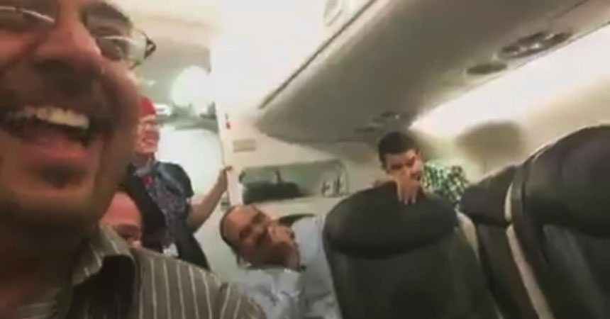 «Aquí está la aeromoza, nos van a dar un vale», dijo, mientras cada palabra suya hacía que las risas se multiplicaran, cuenta RT.