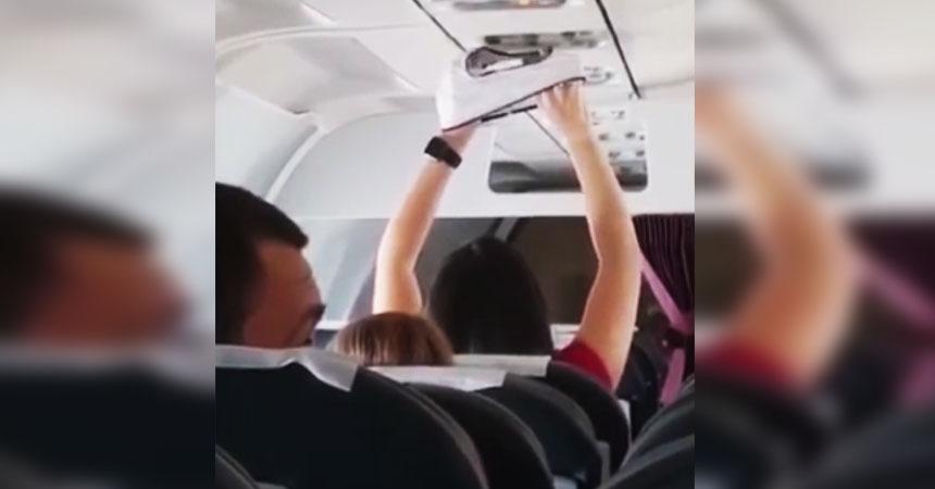 La mujer secó su ropa a vista y paciencia del avión repleto de pasajeros, y fue grabada por uno de ellos.