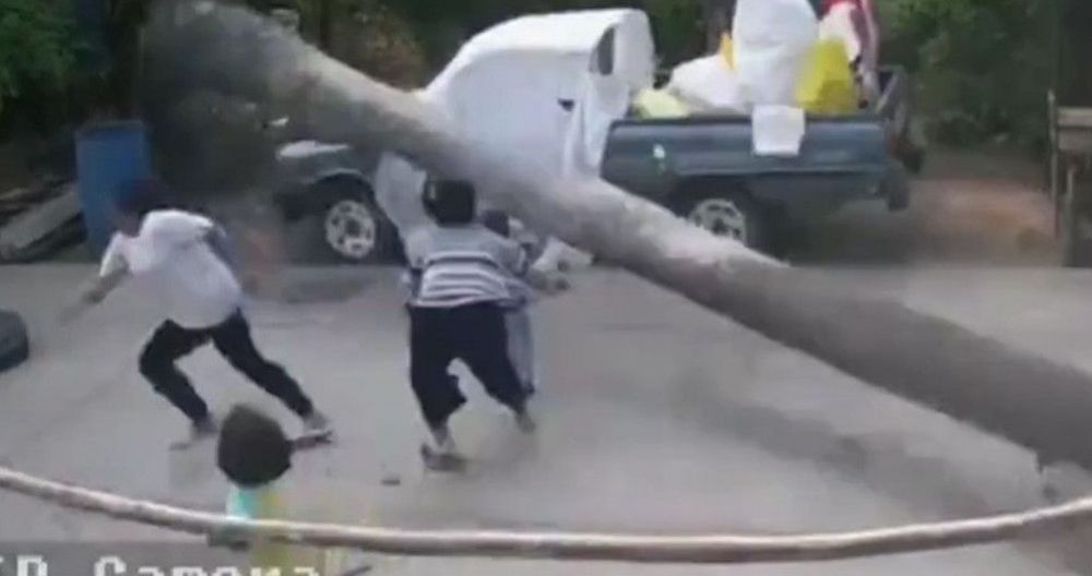 Un nuevo video se ha vuelto viral por la increíble salvada de un niño de ser aplastado por una palmera.