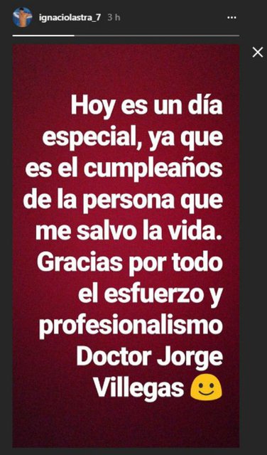 Pero Lastra está consciente que el proceso de recuperación que hoy vive no habría sido posible sin los cuidados que recibió por parte del equipo médico de la clínica. Por eso es que este viernes el ex chico reality le dedicó un emotivo mensaje a Jorge Villegas, el médico que según sus propias palabras le “salvó la vida”.