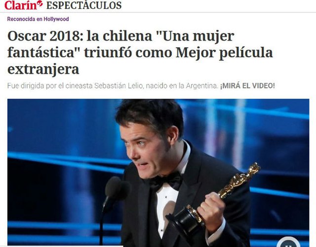 Sin embargo, en Argentina destacaron que el director de la cinta, Sebastián Lelio, nació en Mendoza. “Gracias a un director argentino, Chile ganó el primer Oscar para un largometraje de su historia”, tituló el sitio Minuto Uno.
