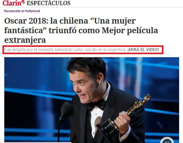 Tras el triunfo de la cinta chilena, varios medios argentinos destacaron que el director nació en Mendoza. “Gracias a un director argentino, Chile ganó el primer Oscar”, tituló Minuto Uno.
