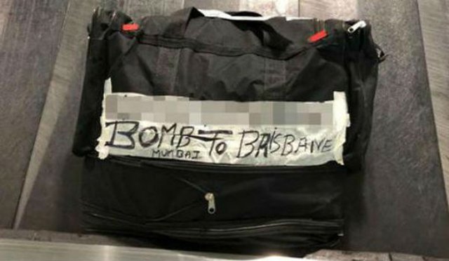 Se trató de una confusión generada por una anciana y su equipaje en esta terminal australiana. La mujer había iniciado su viaje en el aeropuerto internacional Chhatrapati Shivaji, en Bombay (India) y para distinguir su maleta, quizá tratando de evitar que se extraviase durante el largo trayecto, colocó en ella un letrero distintivo. El problema es que lo que para ella no era más que una señal de identificación fue para los agentes de seguridad un indicio inquietante, recoge ABC.