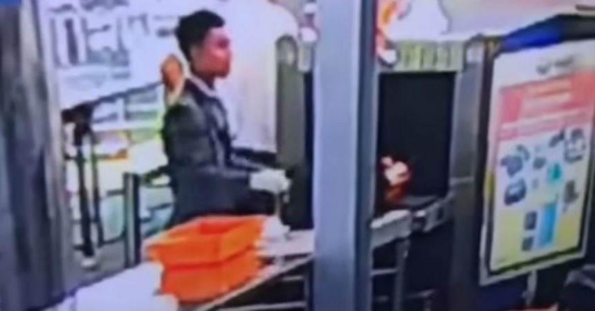De seguro no será premiado como el empleado del mes. Un trabajador encargado de seguridad del aeropuerto de Bangkok, en Tailandia, fue pillado in fraganti robando a un anciano de 89 años.