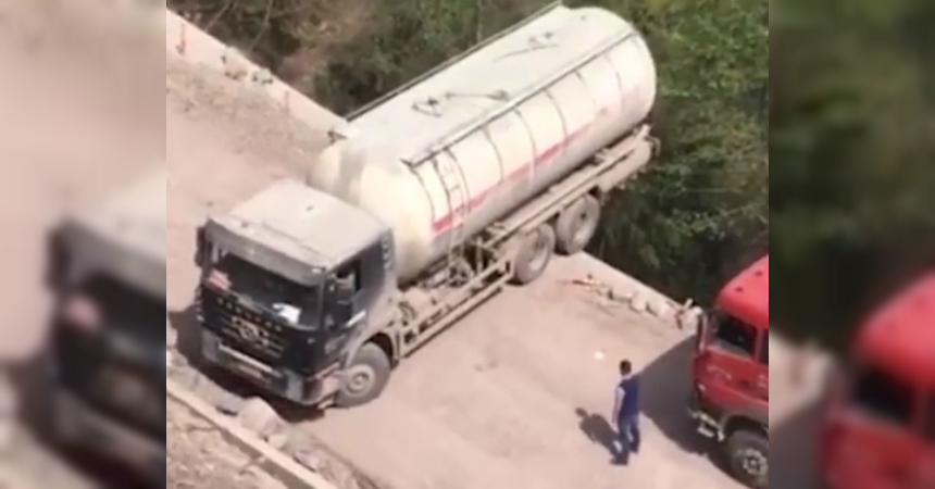 Y es que, pese a que no existe certeza respecto al lugar donde ocurrió el incidente, lo cierto es que sí se puede ver que el camión se encuentra en una calle angosta y, estando al borde del abismo, el chofer intenta virar para seguir con su trayecto.