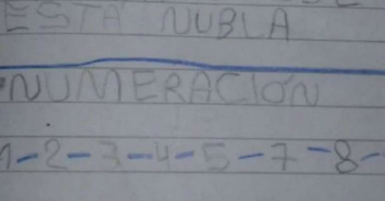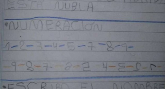 Tal como se ve en la fotografía, la profesora le pidió que escribiera los números del uno al nueve, en secuencia, y luego hacerlo al revés.