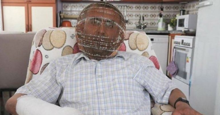 Medida extrema: hombre utiliza una jaula en la cabeza para dejar de fumar
