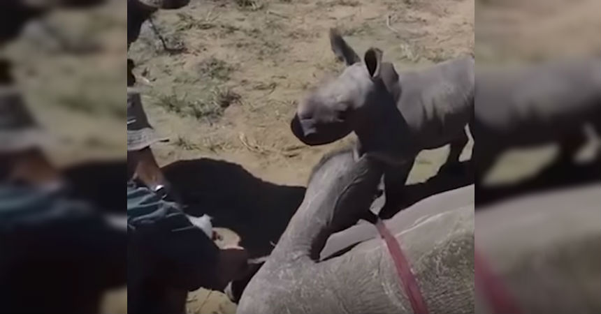 El rinoceronte bebé trató de darles cabezazos a los veterinarios, todo para proteger a su madre que estaba malherida.