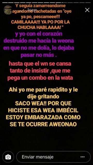 Camila asegura que el actor la obligó a tener sexo y que no se hace cargo de sus hijas. “Asqueroso de mierda, me importa una raja tu pega y lo que te da de comer un asco”, decía una publicación que luego fue borrada y que fue la que gatilló que posteriormente relatara los casos de violencia.