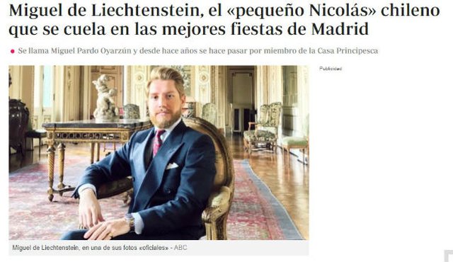 Un artículo del diario español ABC quiso saber la verdadera identidad de Miguel Ángel Von Und Zu Liechtenstein, un enigmático hombre que dice ser miembro de la Casa Principesca de Liechtenstein y que gracias a su supuesto titulo nobiliario se ha colado a las fiestas más exclusivas de Madrid.