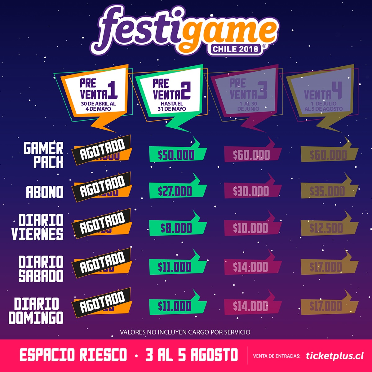 Pero tranqui porque aún puede conseguir tickets a través del sistema www.ticketplus.cl y disfrutar de la fiesta de los videojuegos que se realizará el 3, 4 y 5 de agosto en Espacio Riesco.
