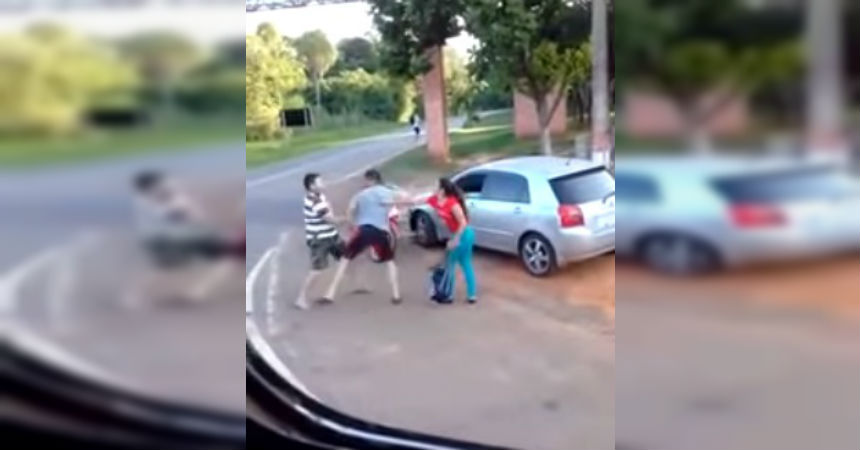 Una joven circulada tranquilamente con su padre, al parecer a comprar combustible, cuando su novio se acercó y comenzó a golpear al hombre mayor, pensando que se trataba del amante de la chica.