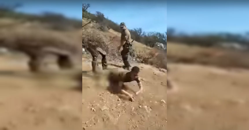 Sin embargo, la cámara apunta hacia lo alto del cerro, desde donde viene corriendo otro uniformado a toda velocidad, quien termina cayendo violentamente al piso y deslizándose unos cuantos metros, lo que provoca la caída de su compañero.