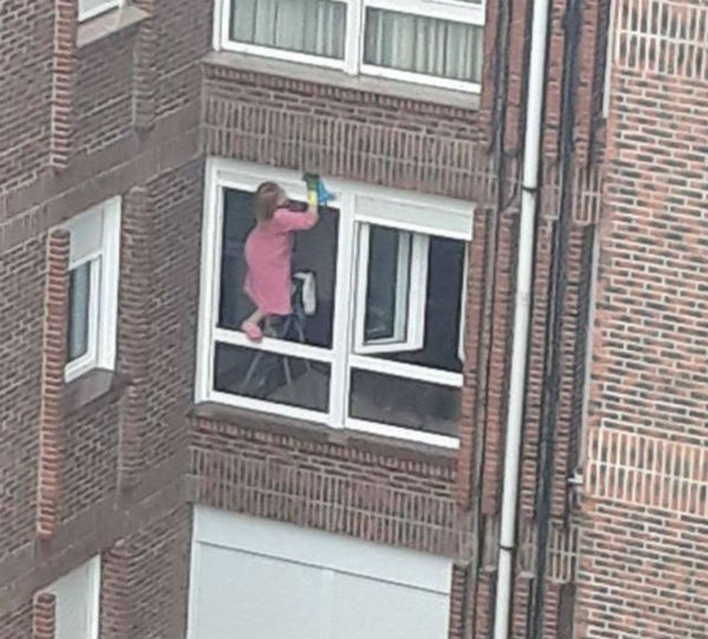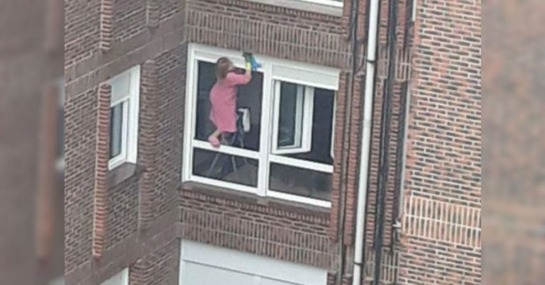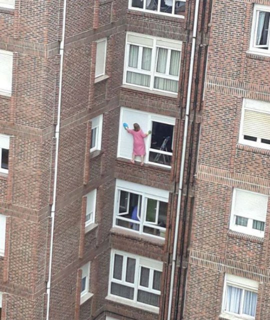 En ocasiones es fácil confundir temeridad con irresponsabilidad. Es lo que han provocado las fotos de una dueña de casa jugándose la vida para limpiar las ventanas de su departamento, ubicado en el cuarto piso de un edifico, en Santander, en la costa norte de España.
