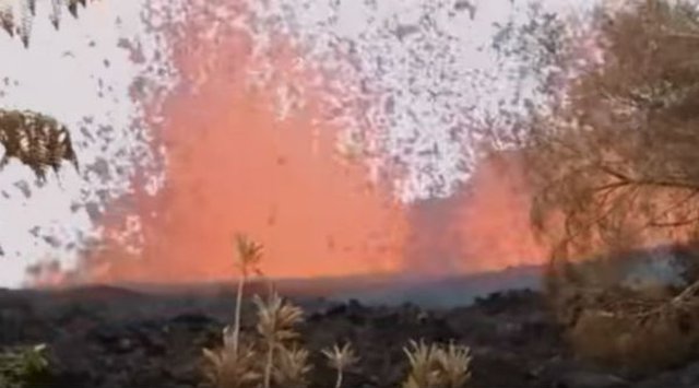 El domingo los habitantes de Leilani Estates tuvieron autorización para volver y chequear cómo estaban sus casas. El lunes, Keith Brock, uno de los vecinos se encontró con una impresionante “sorpresa” en el patio de su hogar: un chorro de lava saliendo del jardín.