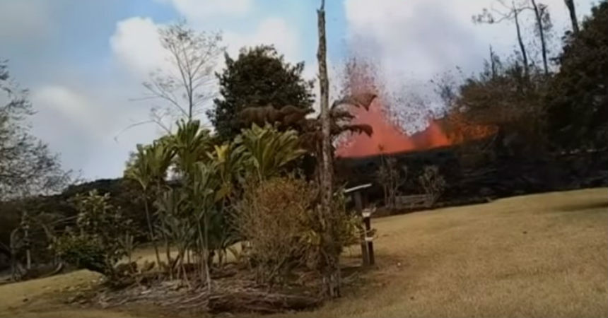 El domingo los habitantes de Leilani Estates tuvieron autorización para volver y chequear cómo estaban sus casas. El lunes, Keith Brock, uno de los vecinos se encontró con una impresionante “sorpresa” en el patio de su hogar: un chorro de lava saliendo del jardín.