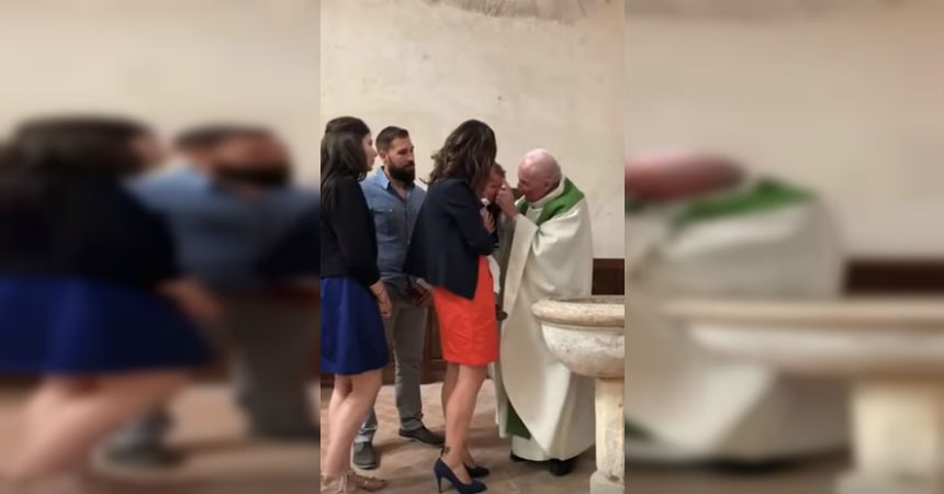 Indignación ha generado un video en el que un sacerdote abofetea a un bebé que no paraba de llorar durante su bautizo.
