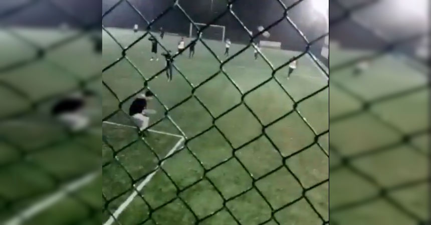 Incluso un grupo de deportistas que el domingo jugaba un partido de baby fútbol fueron sorprendidos por el mal tiempo y salieron arrancando tras el impacto de un rayo.